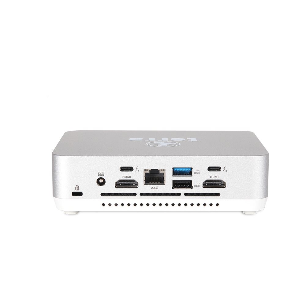Schnittstelle | Front: 1x USB 3.2 Gen 2x2 Type-C Port, 2x USB 3.2 Gen 2 Port Rear: 2x HDMI 2.1 TMDS Port, 1x RJ45, 1x USB 3.2 Gen 2 Port, 1x USB 2.0 Port, 2x Thunderbolt, 12-20 V DC Input |